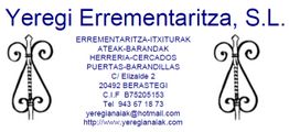 Copyright © 2020 Yeregi Errementaritza, S.L. - Todos los derechos reservados.